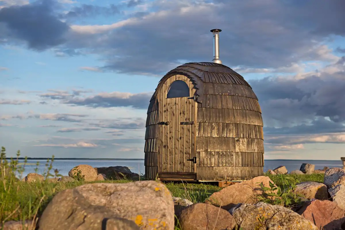 One of the coolest outdoor saunas we've seen. Forged in Estonia - straight from Viking-land - you're going to not just get one of the best saunas of your life in here, but you might rediscover you're part viking. Indulge.